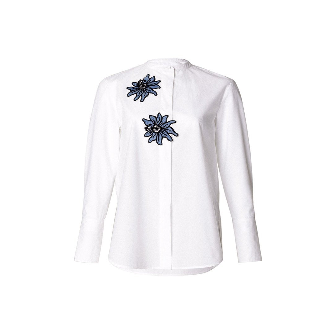 A revamped classic, the Cubillos shirt features a mao collar, long-cuffed sleeves and a hidden button trail. Two oversize floral appliqués on the torso truly elevate this perfectly polished cotton blouse.